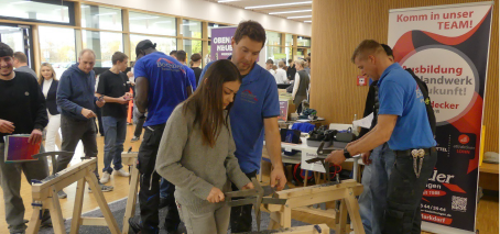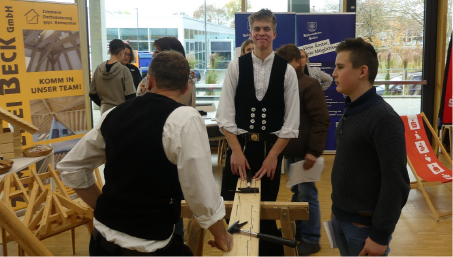 Für die achten und neunten Klassen begann die Veranstaltung mit Informationen im Klassenverband durch Ausbildungsbotschafter/innen verschiedenster Branchen. Die Auszubildenden erzählten den Klassen von ihrer Ausbildung und standen auch für Fragen der Klassen zur Verfügung.