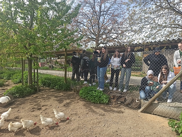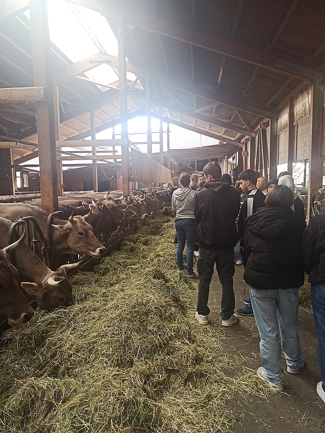 Die 27 Schüler der AES-Gruppe (Klasse 9c/d/e) besuchten im Rahmen des Unterrichts den landwirtschaftlichen Betrieb der Familie Wolpold und wurden hier anschaulich informiert, was es bedeutet, Futter- und Nahrungsmittel selbst zu erzeugen.