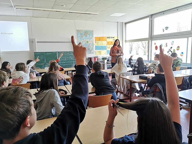Kriminalhauptkommissarin Sigrid Blenke vom Referat Prävention des Polizeipräsidium Ravensburg führte in der vergangenen Woche ihr Programm zur Gewaltprävention in den sechsten Klassen der Realschule Markdorf durch. Sie stieß dabei auf reges Interesse seitens der Schülerinnen und Schüler.