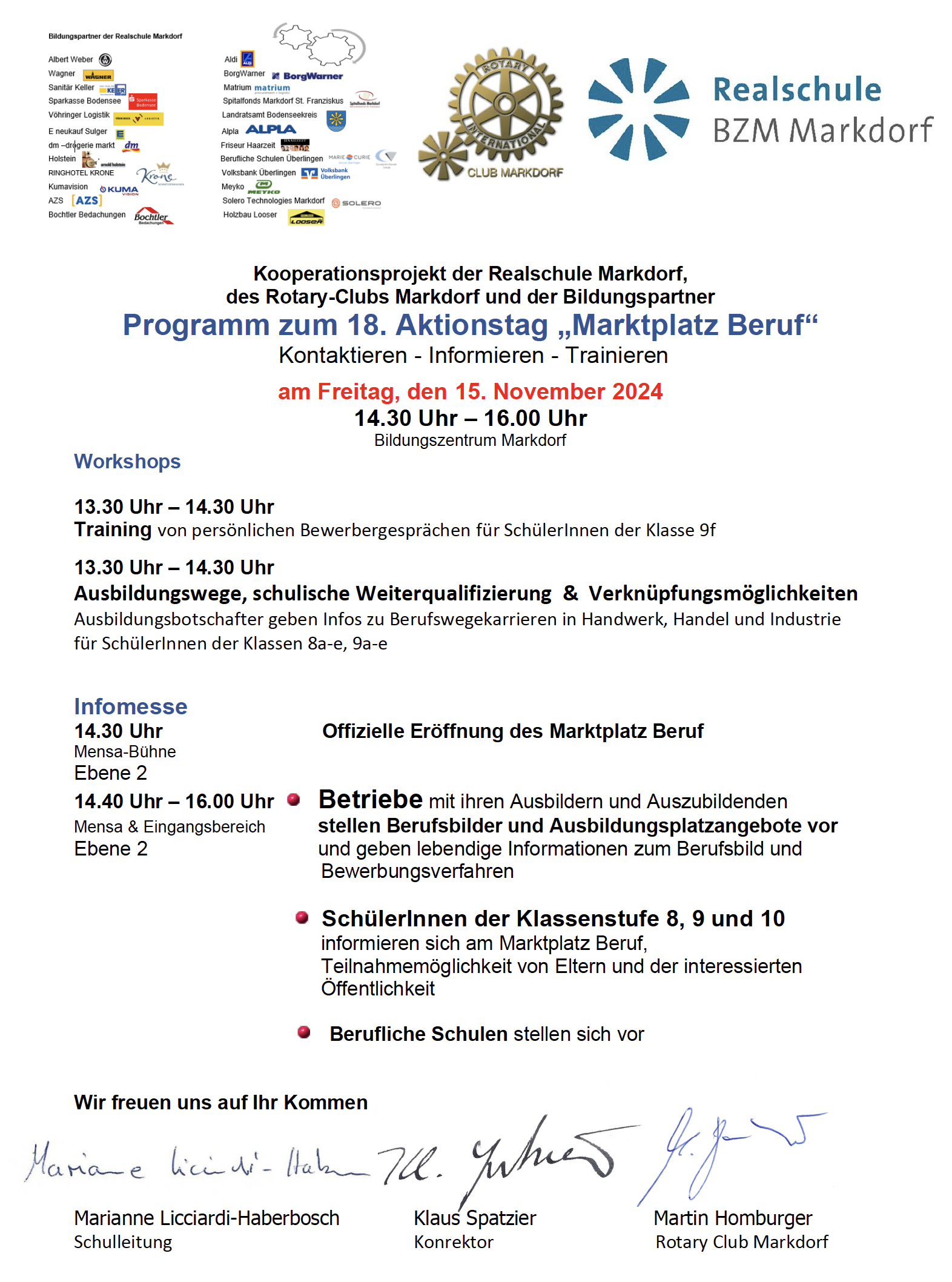 Das Kooperationsprojekt der Realschule Markdorf, des Rotary-Clubs Markdorf und der Bildungspartner findet dieses Jahr nun zum 18. Mal statt.