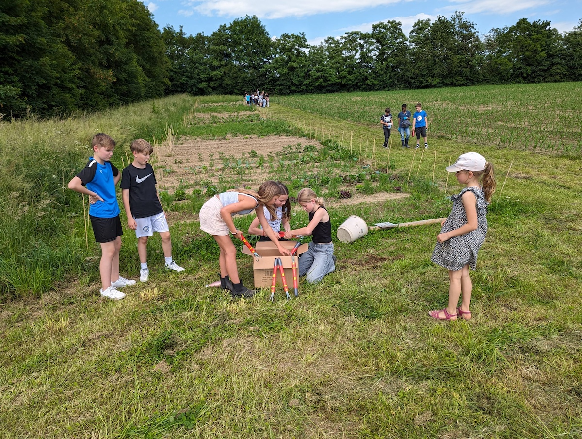 „Wo ist denn schon wieder meine Hacke“? Oder: „Ich kann ohne Hacke nicht auf dem Acker arbeiten“! So, oder ähnlich hört es sich an, wenn gleichzeitig drei Klassen bzw. ungefähr 80 Schüler auf unserem Schulacker arbeiten und Geräte brauchen.