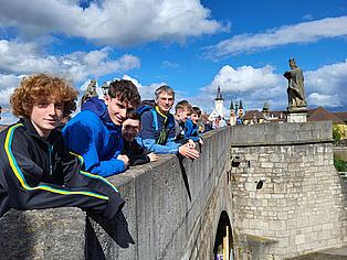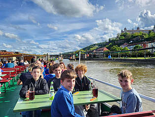 Die fünf Schüler der Klassen 7 bis 9 durften bereits am Sonntag nach Würzburg fahren, um sich die Stadt anzuschauen und um an der offiziellen Begrüßung auf dem Main in Form einer Schiffsrundfahrt teilzunehmen. Bei bestem Wetter und gestärkt durch leckeres Essen wurde, unter der Führung von Herrn Lipinski, der sechs Jahre in Würzburg lebte, der alte Kran, die Festung Marienberg und die alte Mainbrücke bestaunt und anschließend die Jugendherberge mit weiteren 200 Sportlern bezogen. Am darauffolgenden Tag begannen die Wettkämpfe bereits sehr früh, doch die Stimmung war gut. Es galt, die Landessieger aus Bayern und Rheinland-Pfalz zu besiegen, was mit soliden Überschlägen am Sprung gut begann. Noch stärker zeigte sich das Team am Parallelbarren, an dem keine Wertung unter 15 von möglichen 16 Punkten lag. Am Reck wurden ebenfalls sehr saubere Übungen geturnt, wobei jedoch die Kampfrichter sehr streng werteten und somit die angestrebte Führung in Gefahr geriet. Am letzten Gerät, dem Boden, mussten die meisten noch den einen oder anderen Wackler akzeptieren, was letzten Endes dazu führte, dass das oberste Siegerpodest an Bayern vergeben wurde. Die Silbermedaille, und damit den Süddeutschen Vizemeistertitel durften die Markdorfer dann voller Stolz für sich beanspruchen und zu Hause der Schule und auch ihrem Heimatverein, dem Turnverein Markdorf, präsentieren. Eine besondere Leistung gelang dabei noch Oscar H., der die beste Einzelleistung in seiner Altersklasse erreichte. Wir gratulieren dem Team und der betreuenden Lehrkraft, Frau Jacoby, zu dieser starken Leistung und hoffen auf eine ähnlich starke Leistung im nächsten Jahr!