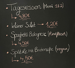 Mit täglich frischem Essen und gegenseitiger Freundlichkeit, die für uns natürlich an erster Stelle steht, möchten wir euch / Sie alle zufriedenstellen.
